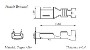 Classified Parts Terminal Family*2 YES/YESC Kaizen Connectors / Type 6.3X0.8 Yazaki / Part Number 7116-4120-02 Connection Type Wire to Wire Wire to Device Unsealed/Seald Unsealed Male/Female Female Number of Poles - Tab Width / mm(inches) 6.3(250) Material Copper Alloy Plating Tin Plating Color - Rating - Mating Part / Numbers 7114-4120-02 Product / Specification No. YPES-11-05-105 Instruction / Manual No. YPES-15-367 Response to / Environmental / Issues ELV,RoHS