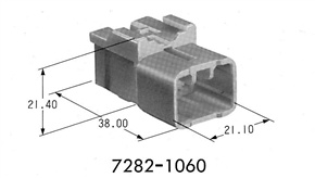 Classified Parts Housing Family*2 2.3II(090II) Connectors / Type - Yazaki / Part Number 7282-1060 Connection Type Wire to Wire Unsealed/Seald Unsealed Male/Female Male Number of Poles 6 Tab Width / mm(inches) 2.3(090) Material Heat-resistance Nylon Plating - Color Natural Rating - Mating Part / Numbers 7283-1060 Product / Specification No. YPES-11-05-057 Instruction / Manual No. YPES-15-080 Response to / Environmental / Issues ELV,RoHS