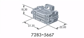 Classified Parts Housing Family*2 Hybrid Connectors / Type 1.0III+2.3II Yazaki / Part Number 7283-5667 Connection Type Wire to Wire Wire to Board Wire to Device Unsealed/Seald Unsealed Male/Female Female Number of Poles 32 Tab Width / mm(inches) N/A Material PBT Plating - Color Natural Rating - Mating Part / Numbers 7282-5667 Product / Specification No. - Instruction / Manual No. YPES-15-331 Response to / Environmental / Issues ELV,RoHS